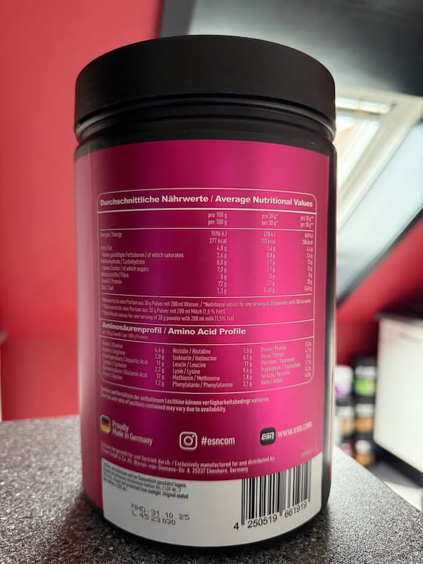 Je vais être direct. La whey ESN Designer fait une chose bien : elle a du goût. ESN maîtrise le côté plaisir, c’est indéniable. Avec plus de 80 parfums, ils ont transformé le shaker protéiné en expérience gustative.