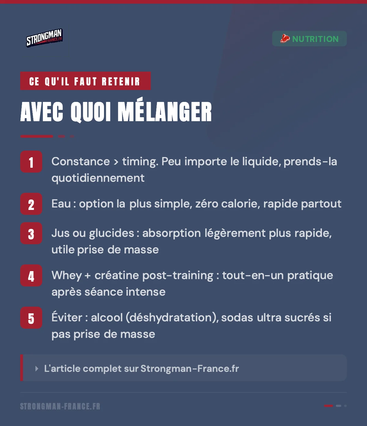 - Parfait après un entraînement Strongman complet (log press, farmers walk, atlas stones…) où les muscles ont vidé leurs réserves.